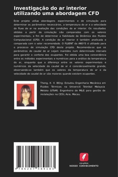 Este projeto utiliza abordagens experimentais e de simulação para determinar os parâmetros necessários, a temperatura do ar e a velocidade do fluxo de ar na avaliação das condições do ar interior. Os resultados obtidos a partir da simulação são comparados com os valores experimentais, a fim de determinar a fiabilidade da Dinâmica dos Fluidos Computacional (CFD). A condição do ar interior é também analisada e comparada com o valor recomendado. O FLUENT da ANSYS é utilizado para o processo de simulação CFD deste projeto. Recomenda-se que os parâmetros do caudal de ar sejam mantidos num determinado intervalo para garantir o conforto dos ocupantes. Foi obtida uma boa concordância entre os métodos experimentais e numéricos para a análise da temperatura do ar, enquanto que a diferença entre os valores experimentais e numéricos da velocidade do caudal de ar é consideravelmente grande, observando-se também que os valores da temperatura do ar e da velocidade do caudal de ar são maiores quando existem ocupantes.