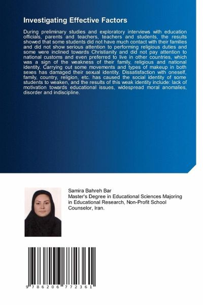 During preliminary studies and exploratory interviews with education officials, parents and teachers, teachers and students, the results showed that some students did not have much contact with their families and did not show serious attention to performing religious duties and some were inclined towards Christianity and did not pay attention to national customs and even preferred to live in other countries, which was a sign of the weakness of their family, religious and national identity. Carrying out some movements and types of makeup in both sexes has damaged their sexual identity. Dissatisfaction with oneself, family, country, religion, etc. has caused the social identity of some students to weaken, and the results of this weak identity include: lack of motivation towards educational issues, widespread moral anomalies, disorder and indiscipline.