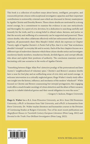"Something between Edgar Allan Poe's detective prodigy of the preternatural and Jane Austen's 'neighborhood of voluntary spies,' Christie's and Bowers's amateur sleuths have a nose for foul play and an unflinching sense of civic duty and moral courage. A welcome intervention in a critically neglected genre, Hugo Walter's timely study offers rare insight into the history, influence, and mechanics of the modern 'whodunit?'. While focused on Christie and Bowers unassuming-but-intrepid protagonists, this engaging work offers a much broader sociology of citizen detectives and the allure of their uncanny capacity to inhabit diabolical genius and their moral obligation to even the score." Gregory S. Jackson, Rutgers University