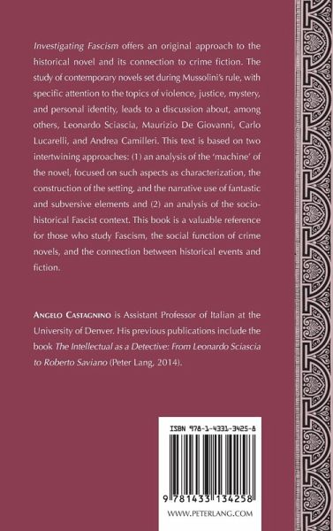 Investigating Fascism offers an original approach to the historical novel and its connection to crime fiction. The study of contemporary novels set during Mussolini's rule, with specific attention to the topics of violence, justice, mystery, and personal identity, leads to a discussion about, among others, Leonardo Sciascia, Maurizio De Giovanni, Carlo Lucarelli, and Andrea Camilleri. This text is based on two intertwining approaches: (1) an analysis of the 'machine' of the novel, focused on such aspects as characterization, the construction of the setting, and the narrative use of fantastic and subversive elements and (2) an analysis of the sociohistorical Fascist context. This book is a valuable reference for those who study Fascism, the social function of crime novels, and the connection between historical events and fiction.