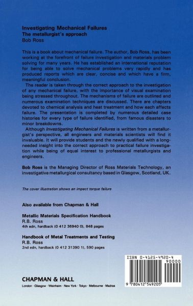 This is a book about mechanical failure. The author, Bob Ross, has been working at the forefront of failure investigation and materials problem solving for many years. He has established an international reputation for being able to solve mechanical problems very rapidly and has produced reports which are clear and concise and which have a firm, meaningful conclusion.