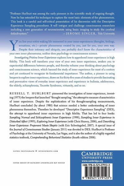 You live your entire waking life immersed in your inner experiences (thoughts, feelings, sensations and so on) - private phenomena created by you, just for you, your own way. Despite their intimacy and ubiquity, you probably do not know the characteristics of your own inner phenomena; neither does psychology or consciousness science. Investigating Pristine Inner Experience explores how to apprehend inner experience in high fidelity. This book will transform your view of your own inner experience, awaken you to experiential differences between people and thereby reframe your thinking about psychology and consciousness science, which banned the study of inner experience for most of a century and yet continued to recognize its fundamental importance. The author, a pioneer in using beepers to explore inner experience, draws on his 35 years of studies to provide fascinating and provocative views of everyday inner experience and experience in bulimia, adolescence, the elderly, schizophrenia, Tourette's syndrome, virtuosity and more.