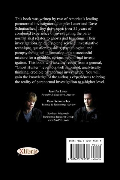 This book was written by two of America's leading paranormal investigators, Jennifer Lauer and Dave Schumacher. They draw upon over 35 years of combined experience of investigating the paranormal as it relates to ghosts and hauntings. Their investigations uniquely blend science, investigative technique, questioning skills, psychological and parapsychological information into a successful mixture for a credible, serious paranormal investigation. This book will take the reader from a general, "Ghost Hunter" level to a well informed, analytically thinking, credible paranormal investigator. You will gain the knowledge of the author's experiences to bring the reality of paranormal investigation to a higher level.