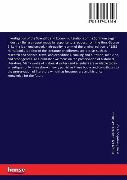 Investigation of the Scientific and Economic Relations of the Sorghum Sugar Industry - Being a report made in response to a request from the Hon. George B. Loring is an unchanged, high-quality reprint of the original edition of 1883.