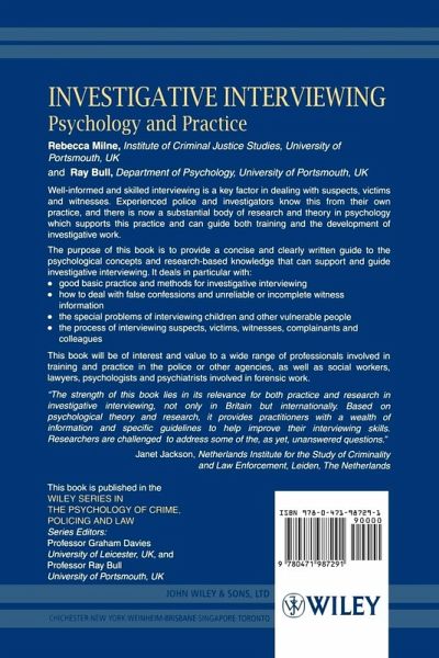 Well-informed and skilled interviewing is a key factor in dealing with suspects, victims and witnesses. Experienced police and investigators know this from their own practice, and there is now a substantial body of research and theory in psychology which supports this practice and can guide both training and the development of investigative work. The purpose of this book is to provide a concise and clearly written guide to the psychological concepts and research-based knowledge that can support and guide investigative interviewing. It deals in particular with: * good basic practice and methods for investigative interviewing * how to deal with false confessions and unreliable or incomplete witness information * the special problems of interviewing children and other vulnerable people * the process of interviewing suspects, victims, witnesses, complainants and colleagues This book will be of interest and value to a wide range of professionals involved in training and practice in the police or other agencies, as well as social workers, lawyers, psychologists and psychiatrists involved in forensic work. "The strength of this book lies in its relevance for both practice and research in investigative interviewing, not only in Britain but internationally. Based on psychological theory and research, it provides practitioners with a wealth of information and specific guidelines to help improve their interviewing skills. Researchers are challenged to address some of the, as yet, unanswered questions." Janet Jackson, Netherlands Institute for the Study of Criminality and Law Enforcement, Leiden, The Netherlands This book is published in the Wiley Series in the Psychology of Crime, Policing and Law Series Editors: professor Professor Graham Davies University of Leicester, UK, and Professor Ray Bull University of Portsmouth, UK