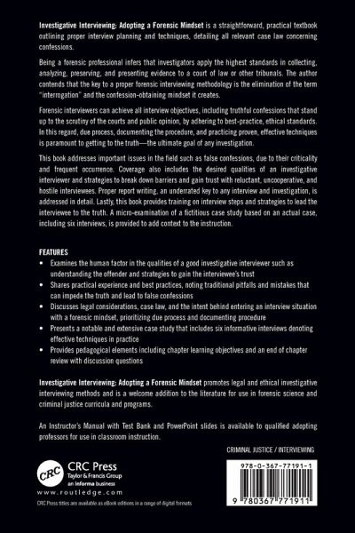 Investigative Interviewing: Adopting a Forensic Mindset is a straight-forward, practical textbook outlining proper interview planning and techniques, detailing all relevant case law concerning confessions. The book promotes legal and ethical investigative interviewing methods.