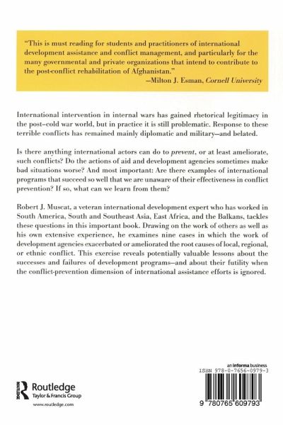 International intervention in internal wars has gained rhetorical legitimacy in the post-cold war period, but in practice it has remained problematic. Response to these conflicts has remained mainly diplomatic and military - and belated. Is there anything international actors can do to prevent, or at least ameliorate, such conflicts? Are conflict-prevention measures already being attempted, and sometimes succeeding so well that we are unaware of their effectiveness? If so, what can we learn from them? In this book, Robert J. Muscat, a veteran international development expert who has worked in South America, South and Southeast Asia, East Africa, and the Balkans, attempts to answer these questions. Drawing on the work of others as well as his own extensive experience, he reviews the accrued insights into the causes of internal conflict. He examines nine cases in which the work of development agencies exacerbated or ameliorated the root causes of conflict. This permits some generalizations about the efficacy or deleterious effects of development programs - and of their futility when the conflict-prevention dimension of international assistance efforts is ignored.