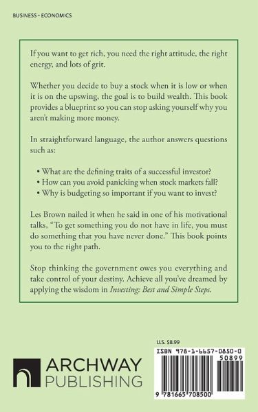 If you want to get rich, you need the right attitude, the right energy, and lots of grit. Whether you decide to buy a stock when it is low or when it is on the upswing, the goal is to build wealth. This book provides a blueprint so you can stop asking yourself why you aren't making more money. In straightforward language, the author answers questions such as: ¿ What are the defining traits of a successful investor? ¿ How can you avoid panicking when stock markets fall? ¿ Why is budgeting so important if you want to invest? Les Brown nailed it when he said in one of his motivational talks, "To get something you do not have in life, you must do something that you have never done." This book points you to the right path. Stop thinking the government owes you everything and take control of your destiny. Achieve all you've dreamed by applying the wisdom in Investing: Best and Simple Steps.