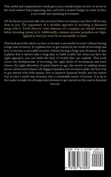 This useful and comprehensive book gives you a detailed plan on how to invest in the stock market from beginning, fast, and with a modest budget in order to have a successful and satisfying investment. All the factors you must take into account before investing in any firm will become clear to you. The importance of a checklist approach to investing is discussed along with it. You'll discover what elements of a company you should research before investing money in it. Additionally, common investor prejudices are highlighted so that you won't be as susceptible to them. This book provides advice on how to become a successful investor without having a huge sum of money. It explains how to get started in the world of investing and how to become a successful investor without having a huge sum of money. It also explains that it doesn't take a long time to build wealth, but when you have the right approach, you can build the kind of wealth that can explode. This book covers the fundamentals of investing, the right kinds of investments and asset classes, the right allocation of assets based on age, the secrets to making money across various asset classes, the biggest mistakes new investors make, the best way to get started with little money, how to improve financial health, and the easiest way to turn a small sum of money into a sustainable source of income. It is up to the reader to make the all-important decision to get started on the road to financial success.