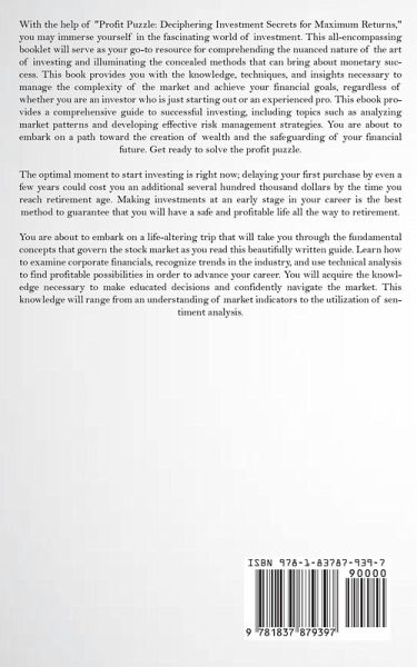 With the help of "Profit Puzzle: Deciphering Investment Secrets for Maximum Returns," you may immerse yourself in the fascinating world of investment. This all-encompassing booklet will serve as your go-to resource for comprehending the nuanced nature of the art of investing and illuminating the concealed methods that can bring about monetary success. This book provides you with the knowledge, techniques, and insights necessary to manage the complexity of the market and achieve your financial goals, regardless of whether you are an investor who is just starting out or an experienced pro. This ebook provides a comprehensive guide to successful investing, including topics such as analyzing market patterns and developing effective risk management strategies. You are about to embark on a path toward the creation of wealth and the safeguarding of your financial future. Get ready to solve the profit puzzle. The optimal moment to start investing is right now; delaying your first purchase by even a few years could cost you an additional several hundred thousand dollars by the time you reach retirement age. Making investments at an early stage in your career is the best method to guarantee that you will have a safe and profitable life all the way to retirement. You are about to embark on a life-altering trip that will take you through the fundamental concepts that govern the stock market as you read this beautifully written guide. Learn how to examine corporate financials, recognize trends in the industry, and use technical analysis to find profitable possibilities in order to advance your career. You will acquire the knowledge necessary to make educated decisions and confidently navigate the market. This knowledge will range from an understanding of market indicators to the utilization of sentiment analysis.