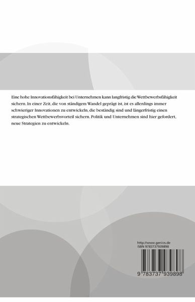 Eine hohe Innovationsfähigkeit bei Unternehmen kann langfristig die Wettbewerbsfähigkeit sichern. In einer Zeit, die von ständigem Wandel geprägt ist, ist es allerdings immer schwieriger Innovationen zu entwickeln, die beständig sind und längerfristig einen strategischen Wettbewerbsvorteil sichern. Politik und Unternehmen sind hier gefordert, neue Strategien zu entwickeln.