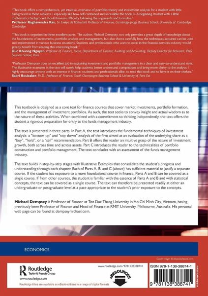 The text is presented in three parts. In Part A, the text introduces the fundamental techniques of investment analysis: a "bottom-up" and "top-down" analysis of the firm aimed at an evaluation of the underlying share as a "buy", "hold", or a "sell" recommendation. Part B offers the reader an intuitive grasp of the nature of investment growth, both across time and across assets. Part C introduces the reader to the technicalities of portfolio construction and portfolio management. The text concludes with an assessment of the funds management industry.
