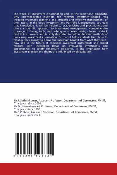 The world of investment is fascinating and, at the same time, enigmatic. Only knowledgeable investors can minimize investment-related risks through systematic planning and efficient and effective management of their assets. In this book investment and Portfolio Management, you gain that knowledge. It will be helpful to academicians and practitioners and offers a scientific approach to investment management, comprehensive coverage of theory, tools, and techniques of investments, a focus on stock market instruments, and is richly illustrated to help understand methods of processing investment information. Further, it helps students learn how to manage their money to derive the maximum benefit from what they earn--now and in the future. It combines investment instruments and capital markets with theoretical detail on evaluating investments and opportunities to satisfy risk-return objectives. It also emphasizes how investment practice and theory are influenced by globalization.