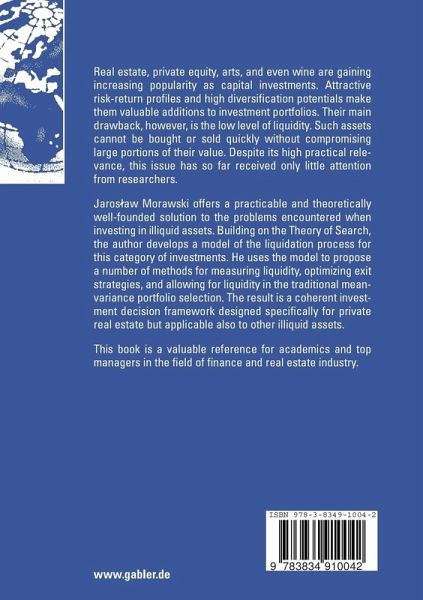The Portfolio Selection Model developed by Markowitz in the 1950s offers a theore- cally founded approach to combining securities into a utility-optimizing investment portfolio, that is, a portfolio leading to the best possible trade-off between the expected return and investment risk. However, when applied in practice, the model often rea- es its limits as soon as certain central assumptions are not fulfilled. This holds es- cially for the assumption of perfect liquidity of all assets in the portfolio, that is, the ability of selling or buying any of these assets at any time immediately and without influencing its market price. A serious additional source of investment risk may arise when no organized and centralized market for a specific asset exists that would d- close the currently prevailing price level, and when the valuations of the asset differ strongly among market participants. Examples of such assets characterized by limited liquidity and valuations' heterogeneity are direct real estate investments, private eq- ty, and many other privately traded goods. A number of rather simple extensions to the Markowitz model allowing for listed - curities with limited liquidity have been developed to date. They are usually based on a price discount due to the lacking ability of an immediate sale. The work of Mora- ki, however, goes further and offers a complex model of market participants' behavior on illiquid markets with heterogeneous expectations.