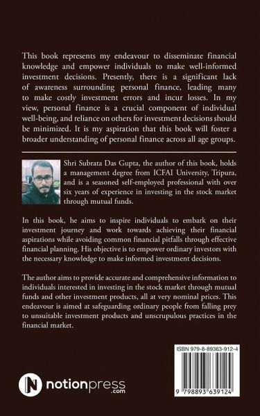 This book represents my endeavour to disseminate financial knowledge and empower individuals to make well-informed investment decisions. Presently, there is a significant lack of awareness surrounding personal finance, leading many to make costly investment errors and incur losses. In my view, personal finance is a crucial component of individual well-being, and reliance on others for investment decisions should be minimized. It is my aspiration that this book will foster a broader understanding of personal finance across all age groups.