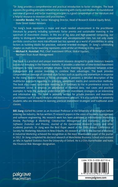 This book is a practical and unique investment resource designed to guide investors towards successful investing in the financial markets. It provides a selection of time-tested investment strategies to help investors enhance returns. Factor investing is positioned between active management and passive investing to combine their advantages. The book provides comprehensive coverage of common style factors such as quality and momentum in response to the rising investor interest in factor strategies. It presents a detailed description of the multifactor approach regarding its principle, investment merits and construction methods. The book also covers sustainable investing as it continues to rise in prominence across the investment sector. It employs an abundance of financial data, real cases and practical examples to help the audience understand different investment strategies in an interesting and informative way. The book is primarily written for private investors and investment practitioners such as equity analysts and investment advisors. It is also suitable for university students who are interested in learning practical investment strategies and traditional asset classes.