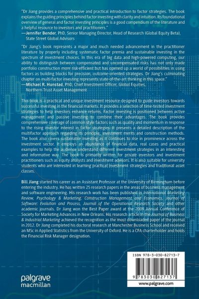 This book is a practical and unique investment resource designed to guide investors towards successful investing in the financial markets. It provides a selection of time-tested investment strategies to help investors enhance returns. Factor investing is positioned between active management and passive investing to combine their advantages. The book provides comprehensive coverage of common style factors such as quality and momentum in response to the rising investor interest in factor strategies. It presents a detailed description of the multifactor approach regarding its principle, investment merits and construction methods. The book also covers sustainable investing as it continues to rise in prominence across the investment sector. It employs an abundance of financial data, real cases and practical examples to help the audience understand different investment strategies in an interesting and informative way. The book is primarily written for private investors and investment practitioners such as equity analysts and investment advisors. It is also suitable for university students who are interested in learning practical investment strategies and traditional asset classes.