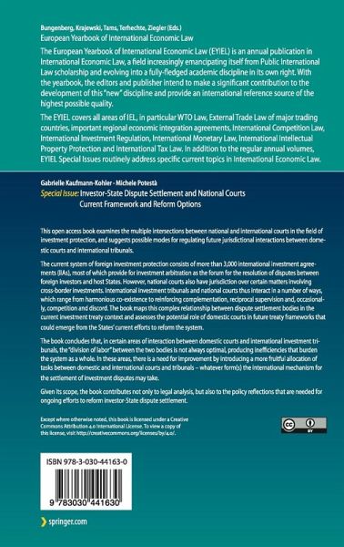 This open access book examines the multiple intersections between national and international courts in the field of investment protection, and suggests possible modes for regulating future jurisdictional interactions between domestic courts and international tribunals. The current system of foreign investment protection consists of more than 3,000 international investment agreements (IIAs), most of which provide for investment arbitration as the forum for the resolution of disputes between foreign investors and host States. However, national courts also have jurisdiction over certain matters involving cross-border investments. International investment tribunals and national courts thus interact in a number of ways, which range from harmonious co-existence to reinforcing complementation, reciprocal supervision and, occasionally, competition and discord. The book maps this complex relationship between dispute settlement bodies in the current investment treaty contextand assesses the potential role of domestic courts in future treaty frameworks that could emerge from the States' current efforts to reform the system.The book concludes that, in certain areas of interaction between domestic courts and international investment tribunals, the "division of labor" between the two bodies is not always optimal, producing inefficiencies that burden the system as a whole. In these areas, there is a need for improvement by introducing a more fruitful allocation of tasks between domestic and international courts and tribunals - whatever form(s) the international mechanism for the settlement of investment disputes may take.Given its scope, the book contributes not only to legal analysis, but also to the policy reflections that are needed for ongoing efforts to reform investor-State dispute settlement.