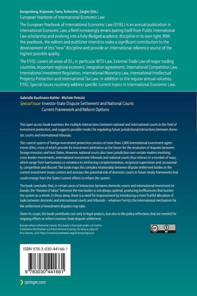 This open access book examines the multiple intersections between national and international courts in the field of investment protection, and suggests possible modes for regulating future jurisdictional interactions between domestic courts and international tribunals. The current system of foreign investment protection consists of more than 3,000 international investment agreements (IIAs), most of which provide for investment arbitration as the forum for the resolution of disputes between foreign investors and host States. However, national courts also have jurisdiction over certain matters involving cross-border investments. International investment tribunals and national courts thus interact in a number of ways, which range from harmonious co-existence to reinforcing complementation, reciprocal supervision and, occasionally, competition and discord. The book maps this complex relationship between dispute settlement bodies in the current investment treaty contextand assesses the potential role of domestic courts in future treaty frameworks that could emerge from the States' current efforts to reform the system.The book concludes that, in certain areas of interaction between domestic courts and international investment tribunals, the "division of labor" between the two bodies is not always optimal, producing inefficiencies that burden the system as a whole. In these areas, there is a need for improvement by introducing a more fruitful allocation of tasks between domestic and international courts and tribunals - whatever form(s) the international mechanism for the settlement of investment disputes may take.Given its scope, the book contributes not only to legal analysis, but also to the policy reflections that are needed for ongoing efforts to reform investor-State dispute settlement.