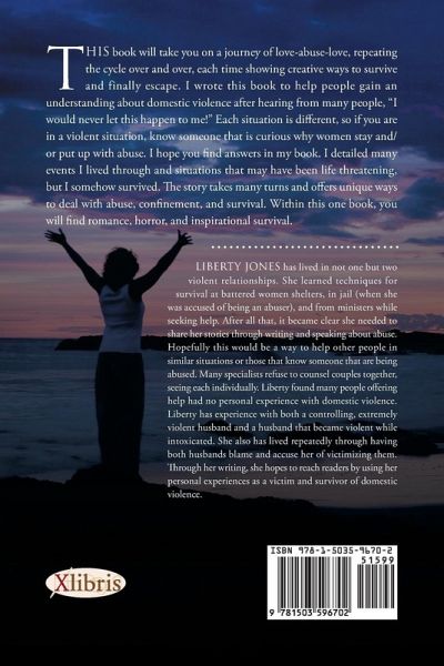 This book will take you on a journey of love-abuse-love, repeating the cycle over and over, each time showing creative ways to survive and finally escape. I wrote this book to help people gain an understanding about domestic violence after hearing from many people, "I would never let this happen to me!" Each situation is different, so if you are in a violent situation, know someone that is curious why women stay and/or put up with abuse. I hope you find answers in my book. I detailed many events I lived through and situations that may have been life threatening, but I somehow survived. The story takes many turns and offers unique ways to deal with abuse, confinement, and survival. Within this one book, you will find romance, horror, and inspirational survival.