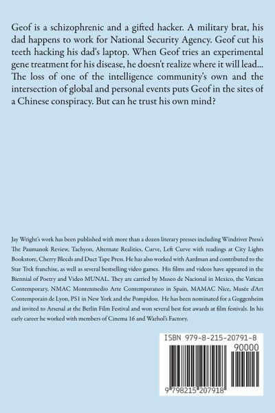 Geof is a schizophrenic and a gifted hacker. A military brat, his dad happens to work for National Security Agency. Geof cut his teeth hacking his dad's laptop. When Geof tries an experimental gene treatment for his disease, he doesn't realize where it will lead... The loss of one of the intelligence community's own and the intersection of global and personal events puts Geof in the sites of a Chinese conspiracy. But can he trust his own mind?