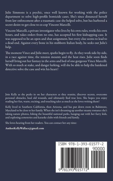 Danger, desire, and a race against time...can a psychic and a hard-edged investigator solve the case before it's too late? Julie Simmons, once celebrated for her psychic work with the police, walked away after a devastating case left her shaken. Now she keeps her distance from law enforcement, though she secretly longs for one man she could never have: former cop turned private investigator Vincent Marcelli. Vince has built his career on independence, refusing to answer to anyone. But his latest kidnapping case leaves him with more questions than answers, forcing him to seek Julie's unique insight. From the moment they join forces, sparks ignite. As clues unravel and danger closes in, the professional line between them blurs into heated passion. Julie must face her fears, trust her gift, and risk her heart--because solving this case may mean the difference between life, death, and the chance at love she's always wanted.