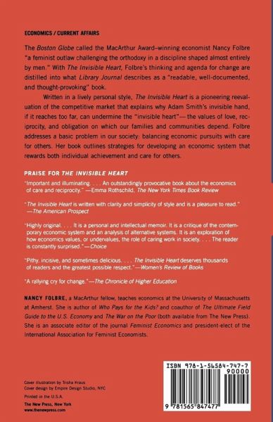 A brilliant approach to the economics of caregiving and feminized work, from the MacArthur Award–winning economist "Important and illuminating . . . an outstandingly provocative book about the economics of care and reciprocity." —Emma Rothschild, The New York Times Book Review Lost in perpetually controversial conversations about "family values" is an examination of the economic forces that are exploding family life and limiting the caregiving that families can provide. As leading feminist economist Nancy Folbre notes, every society must confront the problem of balancing self-interested pursuits with care for others—including children, the elderly, and the infirm. Historically, most societies enjoyed an increased supply of care by maintaining strict limits on women’s freedom. But as these limits have happily and inevitably given way, there are many consequences for those who still need care. Using the image of "the invisible heart" to evoke the forces of compassion that must temper the forces of self-interest, Folbre argues in her classic book that if we don’t establish a new set of rules defining our mutual responsibilities for caregiving, the penalties suffered by the needy—our very families—will increase. Intensified economic competition may drive altruism and families out of business. The COVID-19 pandemic, too, has torn apart the tenuous, fragile web that makes care work possible in our society. Nancy Folbre writes in a lively, personal style and develops a distinctive approach to the economics of care. Unlike others who praise family values, Folbre acknowledges the complicated relationship between women and altruism. The Invisible Heart offers powerful feminist approaches to such policy issues as welfare reform, school finance, and progressive taxation, and it confronts the challenges of globalization, outlining strategies for developing an economic system that rewards both individual achievement and care for others.