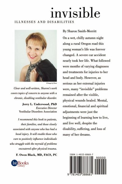 A woman's life was changed forever when an accident left her with an "invisible" and disabling illness. Her story is helpful and inspiring to those with disabilities and their loved ones, offering suggestions on topics including grieving, relationships, finances and sex.