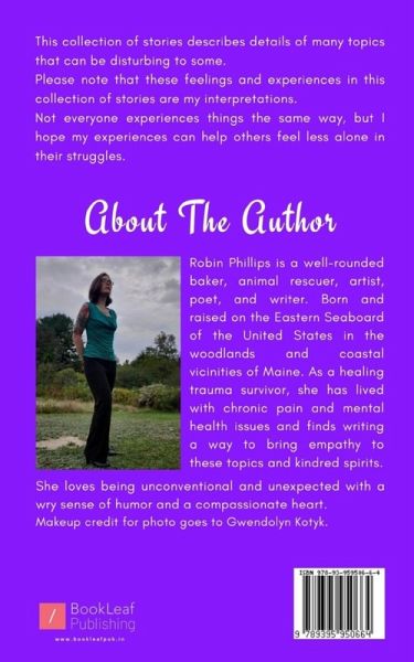 ""This collection of stories describes details of many topics that can be disturbing to some. Please note that these feelings and experiences in this collection of stories are my interpretations. Not everyone experiences things the same way, but I hope my experiences can help others feel less alone in their struggles.""