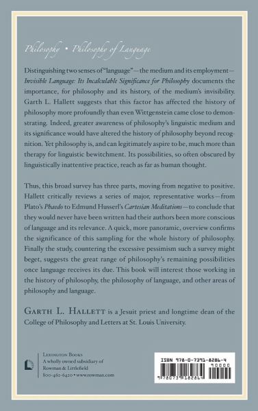 Invisible Language: Its Incalcuable Significance for Philosophy affirms that a greater awareness of language, philosophy's universal medium, could have altered the history of philosophy beyond recognition. Striking a balance between in-depth studies and more over-arching discussions, Garth L. Hallet proves the greatness of the possibilities of philosophy conducted with fuller linguistic awareness.
