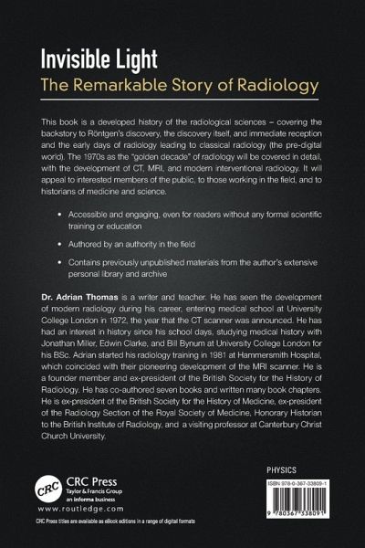 The book is a developed history of the radiological sciences - covering the back-story to Röntgen's discovery, the discovery itself and immediate reception the early days of radiology leading to classical radiology (the pre-digital world). The 1970s as the 'golden decade' of radiology will be covered in detail, with the development of CT, MRI and modern interventional radiology. It will appeal to interested members of the public, to those working in the field, and to historians of medicine and science.