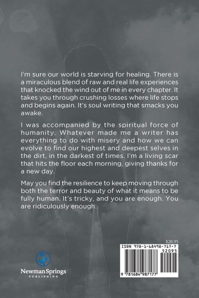 I'm sure our world is starving for healing. There is a miraculous blend of raw and real life experiences that knocked the wind out of me in every chapter. It takes you through crushing losses where life stops and begins again. It's soul writing that smacks you awake. I was accompanied by the spiritual force of humanity. Whatever made me a writer has everything to do with misery and how we can evolve to find our highest and deepest selves in the dirt, in the darkest of times. I'm a living scar that hits the floor each morning, giving thanks for a new day. May you find the resilience to keep moving through both the terror and beauty of what it means to be fully human. It's tricky, and you are enough. You are ridiculously enough.