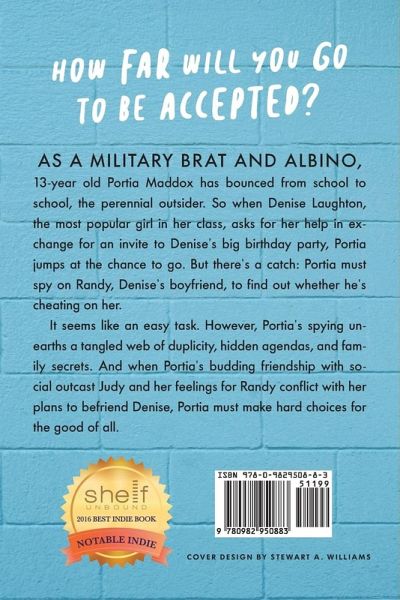 Military brat and albino, 13-year old Portia Maddox, has bounced from school to school, always an outsider. So when Denise Laughton, the most popular girl at her junior high, asks for her help in exchange for an invite to Denise's big birthday party, Portia jumps at the chance to go. But there's a catch: Portia must spy on Randy, Denise's boyfriend, to find out whether he's cheating on her. Portia's spying, however, unearths a tangled web of duplicity, hidden agendas and family secrets. And when Portia's budding friendship with social outcast Judy interferes with her plans to endear herself to Denise, Portia must decide who her real friends are.