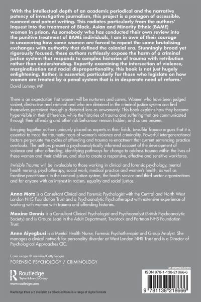 Invisible Trauma highlights the role of emotional, social and cultural forces in traumatizing women who come into contact with the criminal justice system and uncovers areas of their lives that are all too often hidden from view.