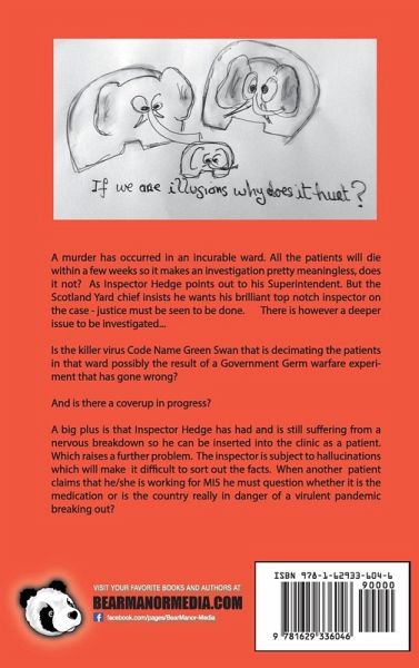 A murder has occurred in an incurable ward. All the patients will die within a few weeks so it makes an investigation pretty meaningless, does it not? As Inspector Hedge points out to his Superintendent. But the Scotland Yard chief insists he wants his brilliant top notch inspector on the case - justice must be seen to be done. There is however a deeper issue to be investigated... Is the killer virus Code Name Green Swan that is decimating the patients in that ward possibly the result of a Government Germ warfare experi- ment that has gone wrong? And is there a coverup in progress? A big plus is that Inspector Hedge has had and is still suffering from a nervous breakdown so he can be inserted into the clinic as a patient. Which raises a further problem. The inspector is subject to hallucinations which will make it difficult to sort out the facts. When another patient claims that he/she is working for MI5 he must question whether it is the medication or is the country really in danger of a virulent pandemic breaking out?