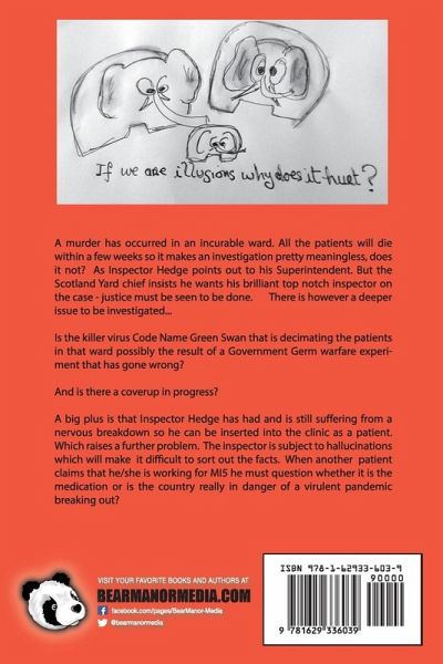 A murder has occurred in an incurable ward. All the patients will die within a few weeks so it makes an investigation pretty meaningless, does it not? As Inspector Hedge points out to his Superintendent. But the Scotland Yard chief insists he wants his brilliant top notch inspector on the case - justice must be seen to be done. There is however a deeper issue to be investigated... Is the killer virus Code Name Green Swan that is decimating the patients in that ward possibly the result of a Government Germ warfare experi- ment that has gone wrong? And is there a coverup in progress? A big plus is that Inspector Hedge has had and is still suffering from a nervous breakdown so he can be inserted into the clinic as a patient. Which raises a further problem. The inspector is subject to hallucinations which will make it difficult to sort out the facts. When another patient claims that he/she is working for MI5 he must question whether it is the medication or is the country really in danger of a virulent pandemic breaking out?
