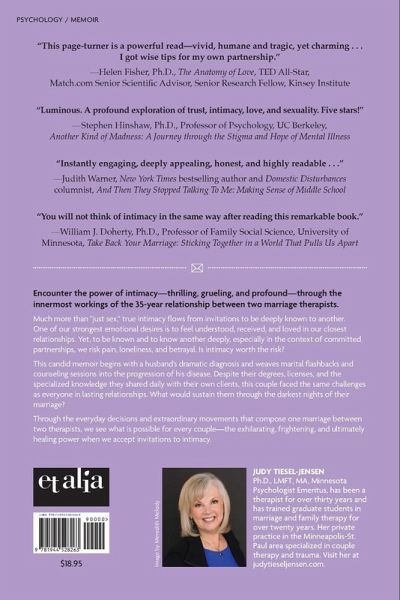 Encounter the power of intimacy-thrilling, grueling, and profound-through the innermost workings of the 35-year relationship between two marriage therapists.¿2022 Nautilus Book Awards Winner in the Relationships & Communication Category 2022 Independent Publisher Book Awards (IPPY) Silver Winner in the Relationships/Sexuality Category 2022 Next Generation Indie Book Award Finalist in the Relationships Category Much more than "just sex," true intimacy flows from invitations to be deeply known to another. One of our strongest emotional desires is to feel understood, received, and loved in our closest relationships. Yet, to be known and to know another deeply, especially in the context of committed partnerships, we risk pain, loneliness, and betrayal. Is intimacy worth the risk? This candid memoir begins with a husband's dramatic diagnosis and weaves marital flashbacks and counseling sessions into the progression of his disease. Despite their degrees, licenses, and the specialized knowledge they shared daily with their own clients, they faced the same challenges as everyone in lasting relationships. What would sustain them through the darkest nights of their marriage? Through the everyday decisions and extraordinary movements that compose one marriage between two therapists, we see what is possible for every couple-the exhilarating, frightening, and ultimately healing power when we accept invitations to intimacy.