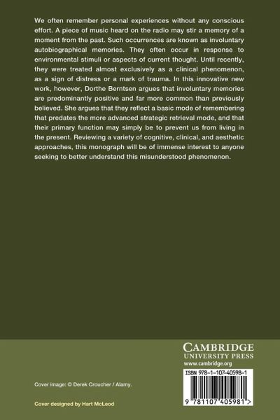 We often remember personal experiences without any conscious effort. A piece of music heard on the radio may stir a memory of a moment from the past. Such occurrences are known as involuntary autobiographical memories. They often occur in response to environmental stimuli or aspects of current thought. Until recently, they were treated almost exclusively as a clinical phenomenon, as a sign of distress or a mark of trauma. In this innovative work, however, Dorthe Berntsen argues that involuntary memories are predominantly positive and far more common than previously believed. She argues that they reflect a basic mode of remembering that predates the more advanced strategic retrieval mode, and that their primary function may simply be to prevent us from living in the present. Reviewing a variety of cognitive, clinical, and aesthetic approaches, this monograph will be of immense interest to anyone seeking to better understand this misunderstood phenomenon.