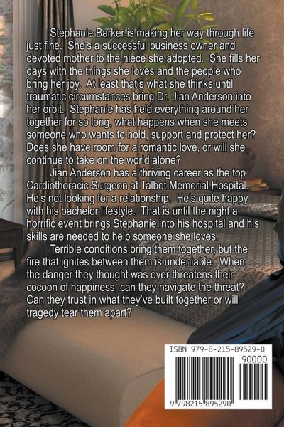 Stephanie Barker is making her way through life just fine. She's a successful business owner and devoted mother to the niece she adopted. She fills her days with the things she loves and the people who bring her joy. At least that's what she thinks until traumatic circumstances bring Dr. Jian Anderson into her orbit. Stephanie has held everything around her together for so long, what happens when she meets someone who wants to hold, support and protect her? Does she have room for a romantic love, or will she continue to take on the world alone? Jian Anderson has a thriving career as the top Cardiothoracic Surgeon at Talbot Memorial Hospital. He's not looking for a relationship. He's quite happy with his bachelor lifestyle. That is until the night a horrific event brings Stephanie into his hospital and his skills are needed to help someone she loves. Terrible conditions bring them together, but the fire that ignites between them is undeniable. When the danger they thought was over threatens their cocoon of happiness, can they navigate the threat? Can they trust in what they've built together or will tragedy tear them apart? **Note from the Author** This story contains subject matter which may evoke intense emotions. While it is a love story there are references to and instances of violence, death, child abandonment, transphobia, strong language and human trafficking.
