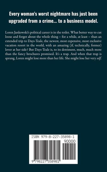 Loren Jankowski's political career is in the toilet. What better way to cut loose and forget about the whole thing - for a while, at least - than an extended trip to Days-Teale, the newest, most expensive, most exclusive vacation resort in the world, with an amazing (if, technically, former) lover at her side? But Days-Teale is, to its detriment, much, much more than the fancy brochures promised. It's a trap. And when that trap is sprung, Loren might lose more than her life. She might lose her very self.