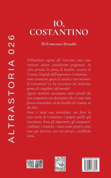 Nell'archivio segreto del Vaticano, sono state ritrovate alcune antichissime pergamene. In calce portano la firma di Eusebio, vescovo di Cesarea, biografo dell'imperatore Costantino. Sono veramente queste le uniche e vere memorie di Costantino? Le ha raccontate lui medesimo prima di congedarsi dal mondo? Queste memorie raccontano tanti episodi che non compaiono nei documenti che ci sono stati finora tramandati, né da Eusebio di Cesarea, né da altri. Forse è tutta una invenzione, ma forse la vera storia di Costantino è proprio quella qui raccontata. Forse gli imperatori, gli usurpatori, i militari, i senatori, i santi erano proprio come sono qui descritti: con vizi privati e pubbliche virtù. In coda al romanzo ci sono due Appendici. Nella Appendice 1 sono indicare le reali vicende dei personaggi storici citati, distinguendo tra realtà e fantasia. Nell'Appendice 2 c'è una leggenda per le tante espressioni latine e greche che ho voluto inserire nel romanzo, inclusi i nomi latini di città che oggi conosciamo con altri nomi.