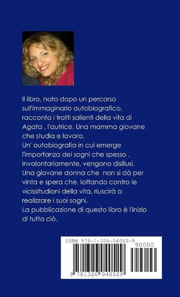 il libro,nato dopo un percorso sull' immaginario autobiografico, racconta i tratti salienti della vita di Agata, l'autrice.Una mamma giovane che studia e lavora. Un'autobiografia in cui emerge l'importanza dei sogni che spesso, involontariamente, vengono disilliusi. Una giovane donna che non si dà per vinta e spera che, lottando contro le vicissitudini della vita, un giorno, riuscirà a realizzare i suoi sogni. La pubblicazione di questo libro è l'inizio di tutto ciò.