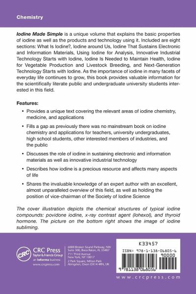 Iodine Made Simple is a unique volume that explains the basic properties of iodine as well as the products and technology using it. Included are eight sections: What Is Iodine?, Iodine around Us, Iodine That Sustains Electronic and Information Materials, Using Iodine for Analysis, Innovative Industrial Technology Starts with Iodine, Iodine Is Needed to Maintain Health, Iodine for Vegetable Production and Livestock Breeding, and Next-Generation Technology Starts with Iodine. As the importance of iodine in many facets of everyday life continues to grow, this book provides valuable information for the scientifically literate public and undergraduate university students interested in this field.