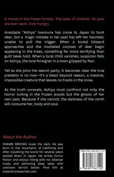 It moves in the frozen forests. The taker of children. Its jaws are ever open. Ever hungry. Deep in the snowbound wilderness of Hokkaido, something an ancient evil stalks the forests. Anastasia "Ashiya" Ivanovna has come to Japan to hunt deer, but she carries a secret burden-one that keeps her from ever pulling the trigger. A tragic mistake in her past has left her haunted, unable to kill. But when a brutal blizzard approaches and the mutilated corpses of deer begin appearing in the trees, something far more terrifying than guilt takes hold. When a local child vanishes, suspicion falls on Ashiya, the lone foreigner in a town gripped by fear. Yet as she joins the search party, it becomes clear the true predator is no man-it's a beast beyond reason, a massive, impossible creature that leaves no tracks in the snow. As the truth unravels, Ashiya must confront not only the horror lurking in the frozen woods but the ghosts of her own past. Because if she cannot, the darkness of the north will consume her, body and soul. A chilling blend of folklore and survival horror, this gripping thriller will keep you breathless until the final page. Perfect for fans of eerie, atmospheric horror with a psychological edge. ���� Dare to face the beast? Grab your copy today.