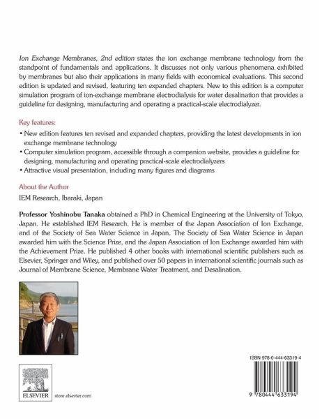 Fundamental study and industrial application of ion exchange membranes started over half a century ago. Through ongoing research and development, ion exchange membrane technology is now applied to many fields and contributes to the improvement of our standard of living. Ion Exchange Membranes, 2nd edition states the ion exchange membrane technology from the standpoint of fundamentals and applications. It discusses not only various phenomena exhibited by membranes but also their applications in many fields with economical evaluations.