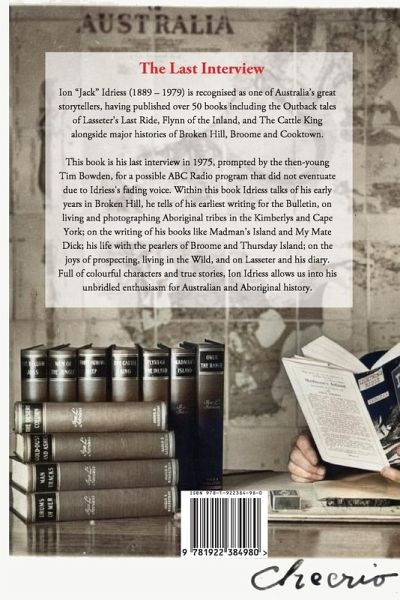 Ion "Jack" Idriess (1889 – 1979) is recognised as one of Australia’s great storytellers, having published over 50 books including the Outback tales of Lasseter’s Last Ride, Flynn of the Inland, and The Cattle King alongside major histories of Broken Hill, Broome and Cooktown. This book is his last interview in 1975, prompted by the then-young Tim Bowden, for a possible ABC Radio program that did not eventuate due to Idriess's fading voice. Within this book Idriess talks of his early years in Broken Hill, he tells of his earliest writing for the Bulletin, on living and photographing Aboriginal tribes in the Kimberlys and Cape York; on the writing of his books like Madman’s Island and My Mate Dick; his life with the pearlers of Broome and Thursday Island; on the joys of prospecting, living in the Wild, and on Lasseter and his diary. Full of colourful characters and true stories, Ion Idriess allows us into his unbridled enthusiasm for Australian and Aboriginal history.