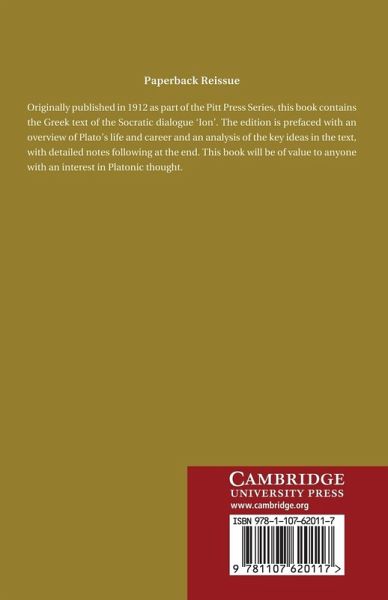 Originally published in 1912 as part of the Pitt Press Series, this book contains the Greek text of the Socratic dialogue Ion. The edition is prefaced with an overview of Plato's life and career and an analysis of the key ideas in the text, with detailed notes following at the end. This book will be of value to anyone with an interest in Platonic thought.
