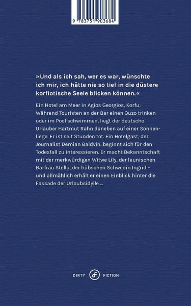 »Und als ich sah, wer es war, wünschte ich mir, ich hätte nie so tief in die düstere korfiotische Seele blicken können.« Ein Hotel am Meer in Agios Georgios, Korfu: Während Touristen an der Bar einen Ouzo trinken oder im Pool schwimmen, liegt der deutsche Urlauber Hartmut Rahn daneben auf einer Sonnenliege. Er ist seit Stunden tot. Ein Hotelgast, der Journalist Demian Baldvin, beginnt sich für den Todesfall zu interessieren. Er macht Bekanntschaft mit der merkwürdigen Witwe Lily, der launischen Barfrau Stella, der hübschen Schwedin Ingrid - und allmählich erhält er einen Einblick hinter die Fassade der Urlaubsidylle ... Ionische-Epen.de