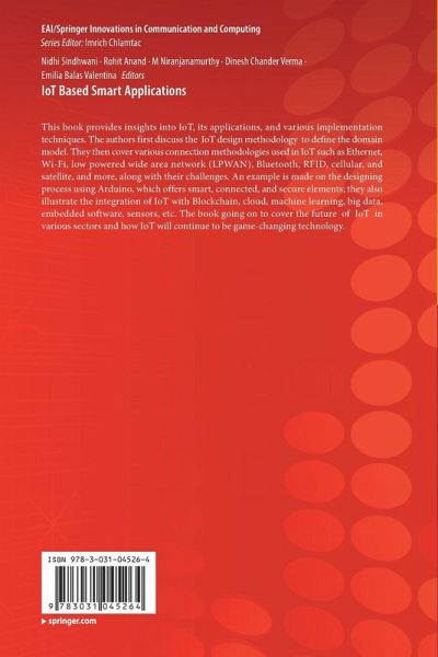 This book provides insights into IoT, its applications, and various implementation techniques. The authors first discuss the IoT design methodology to define the domain model. They then cover various connection methodologies used in IoT such as Ethernet, Wi-Fi, low powered wide area network (LPWAN), Bluetooth, RFID, cellular, and satellite, and more, along with their challenges. An example is made on the designing process using Arduino, which offers smart, connected, and secure elements; they also illustrate the integration of IoT with Blockchain, cloud, machine learning, big data, embedded software, sensors, etc. The book going on to cover the future of IoT in various sectors and how IoT will continue to be game-changing technology.