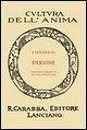 La collana "Cultura dell'anima" fu ideata da Giovanni Papini e pubblicata da Rocco Carabba dal 1909 al 1938, per un totale di 163 titoli. Dal 2008 la casa editrice Carabba ha deciso di ripubblicare, in ristampa anastatica, nella sua interezza la collana "Cultura dell'anima" in un arco di tempo di cinque anni, con l'uscita di circa trenta volumi annuali. Frammenti tradotti e ordinati da Gina Martegiani. 'Di questo romantico ellenista, che morì pazzo, si danno ora i più belli e strani pensieri, tolti dal suo capolavoro (Hyperion, 1797-1799)'. (G. Papini). Das Urheberrecht an bibliographischen und produktbeschreibenden Daten und an den bereitgestellten Bildern liegt bei Informazioni Editoriali, I.E. S.r.l., oder beim Herausgeber oder demjenigen, der die Genehmigung erteilt hat. Alle Rechte vorbehalten.